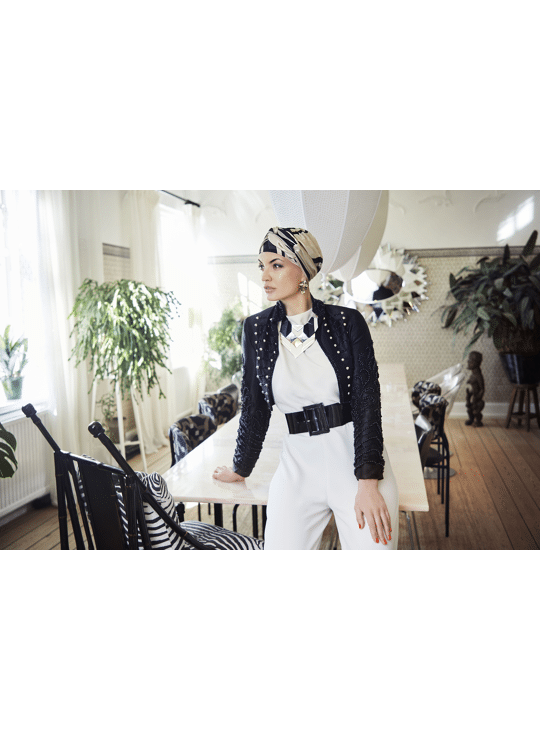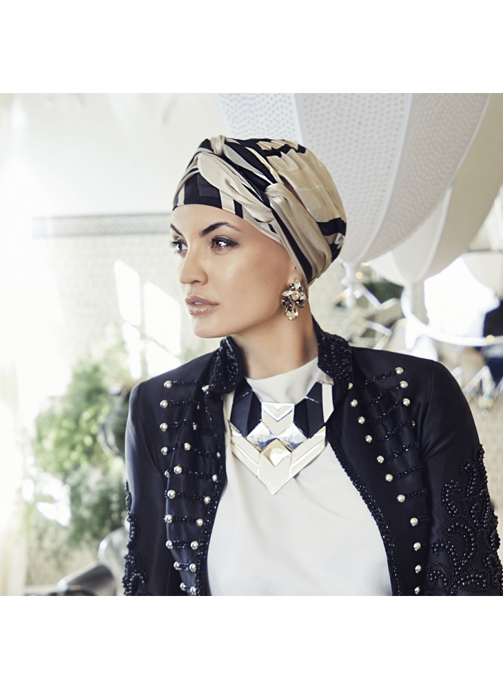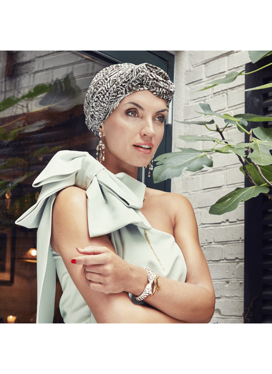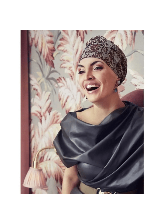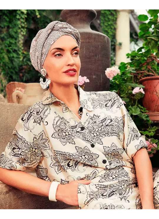 Le turban Amber de chez Christine incarne l'élégance et la polyvalence. Conçu avec une large bande lisse autour du front et des couches subtiles à l'arrière, il offre une silhouette flatteuse et sophistiquée. Sa fabrication en polyester doux garantit un ajustement confortable, tandis que la possibilité d'ajuster le tissu pour un ajustement personnalisé ajoute une touche de praticité. Le bandeau amovible, doté d'un système de fixation discret, ajoute une dimension supplémentaire à ce turban. Avec ses boucles élégantes créant un chignon délicatement décalé sur le côté, il évoque un charme classique avec une touche moderne. À l'intérieur, la doublure en viscose de bambou assure un confort optimal contre la peau. L'imprimé graphique noir, agrémenté de touches de rouge, apporte une touche bohème chic à ce turban déjà élégant. Que ce soit pour une journée décontractée ou une occasion spéciale, le turban Amber offre un style sans effort et une sophistication intemporelle.