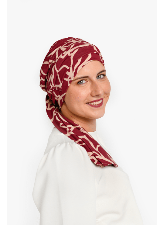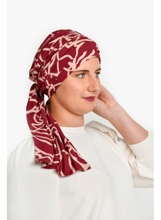 Profitez d'un confort optimal et d'une sécurité totale grâce au foulard solidement fixé au bonnet, évitant ainsi tout risque de glissement. De plus, ce foulard chimio a été intelligemment conçu, sans coutures internes ni élastiques rigides, pour prévenir toute irritation de votre cuir chevelu déjà délicat.