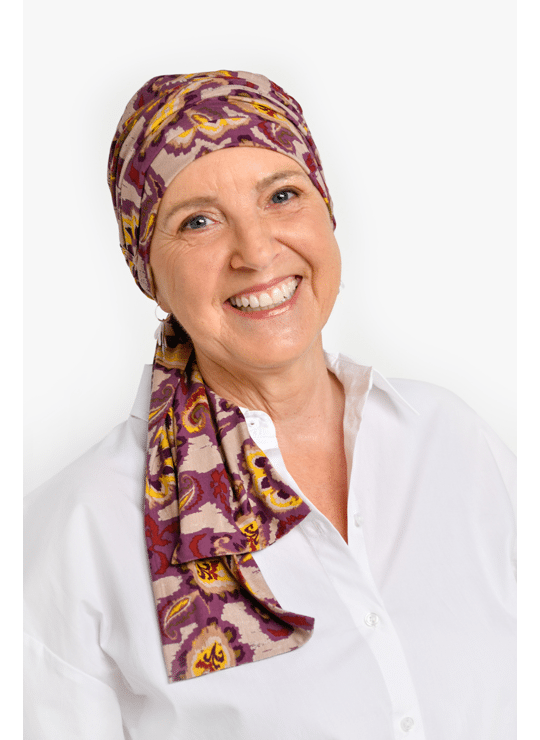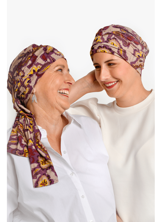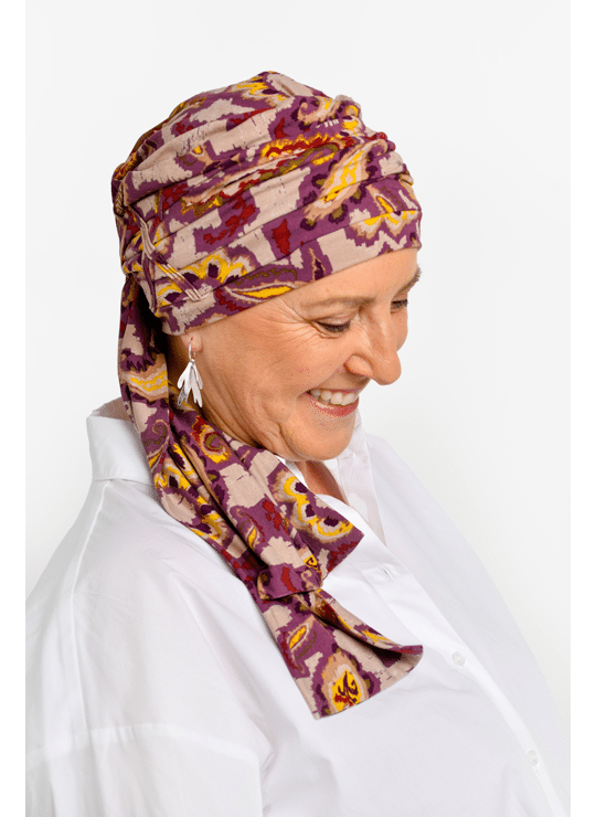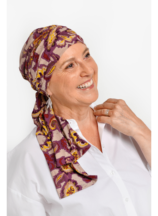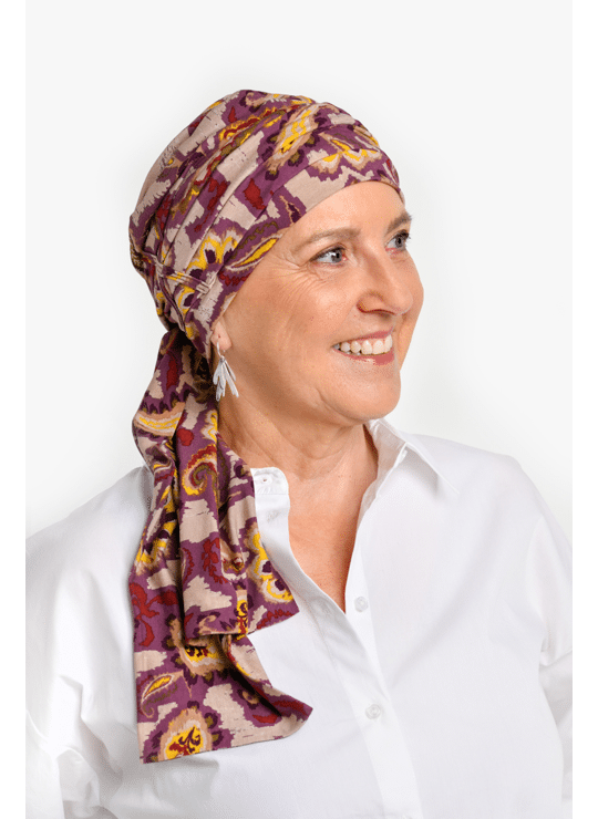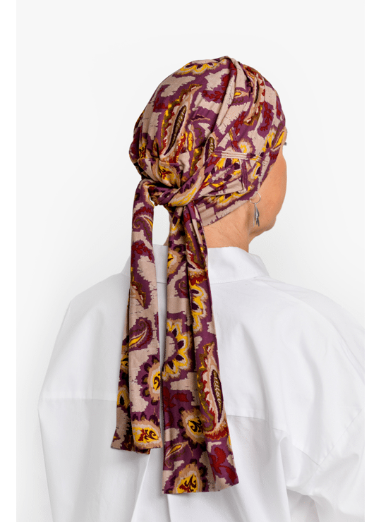 Profitez d'un confort optimal et d'une sécurité totale grâce au foulard solidement fixé au bonnet, évitant ainsi tout risque de glissement. De plus, ce foulard chimio a été intelligemment conçu, sans coutures internes ni élastiques rigides, pour prévenir toute irritation de votre cuir chevelu déjà délicat.