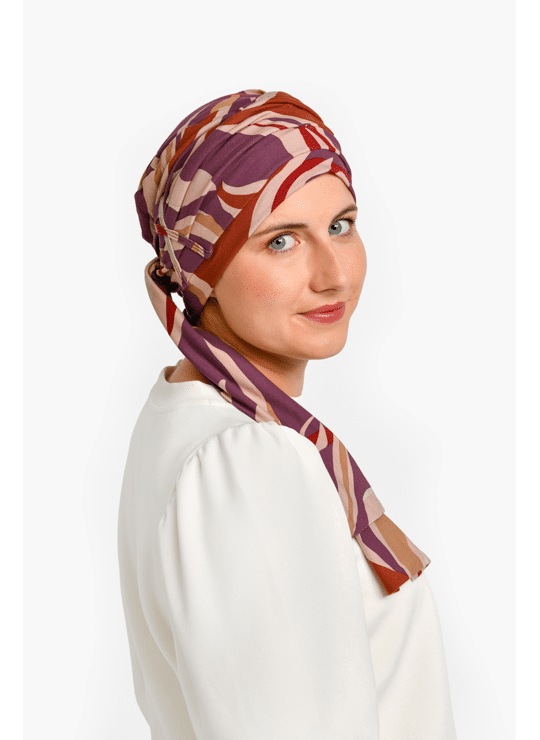 Profitez d'un confort optimal et d'une sécurité totale grâce au foulard solidement fixé au bonnet, évitant ainsi tout risque de glissement. De plus, ce foulard chimio a été intelligemment conçu, sans coutures internes ni élastiques rigides, pour prévenir toute irritation de votre cuir chevelu déjà délicat.