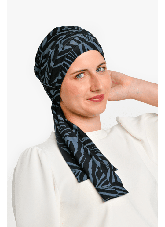 Profitez d'un confort optimal et d'une sécurité totale grâce au foulard solidement fixé au bonnet, évitant ainsi tout risque de glissement. De plus, ce foulard chimio a été intelligemment conçu, sans coutures internes ni élastiques rigides, pour prévenir toute irritation de votre cuir chevelu déjà délicat.