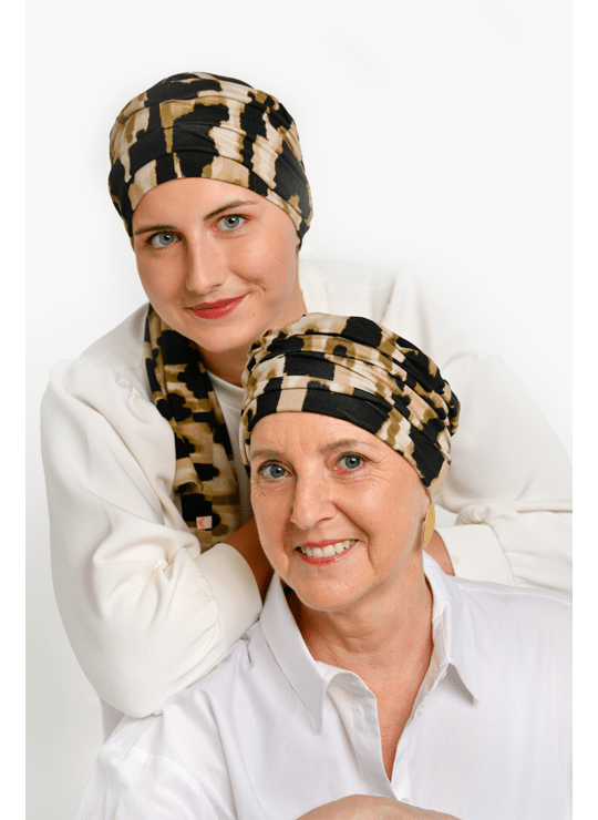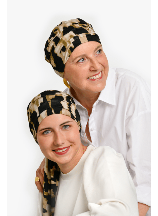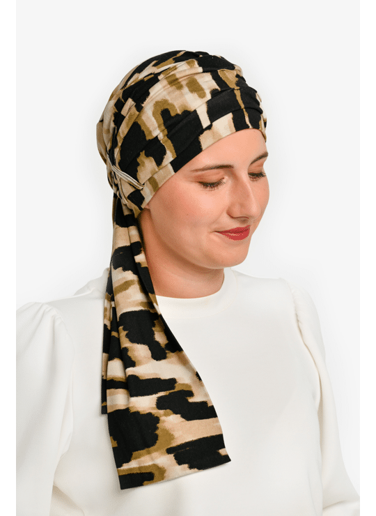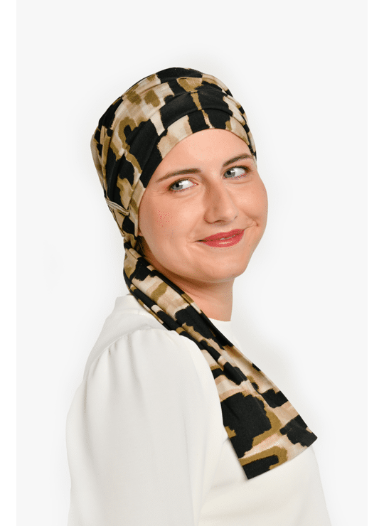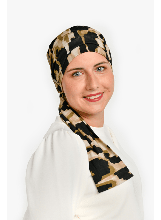 Profitez d'un confort optimal et d'une sécurité totale grâce au foulard solidement fixé au bonnet, évitant ainsi tout risque de glissement. De plus, ce foulard chimio a été intelligemment conçu, sans coutures internes ni élastiques rigides, pour prévenir toute irritation de votre cuir chevelu déjà délicat.