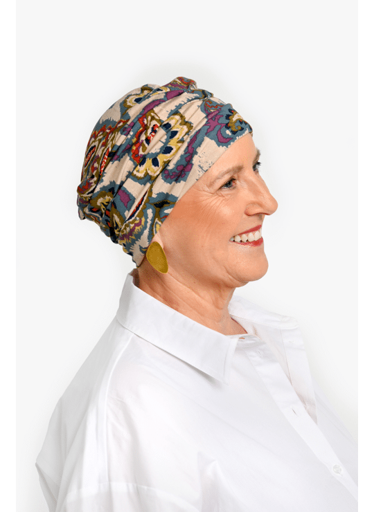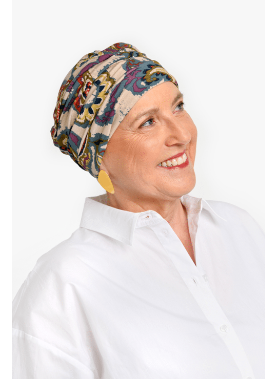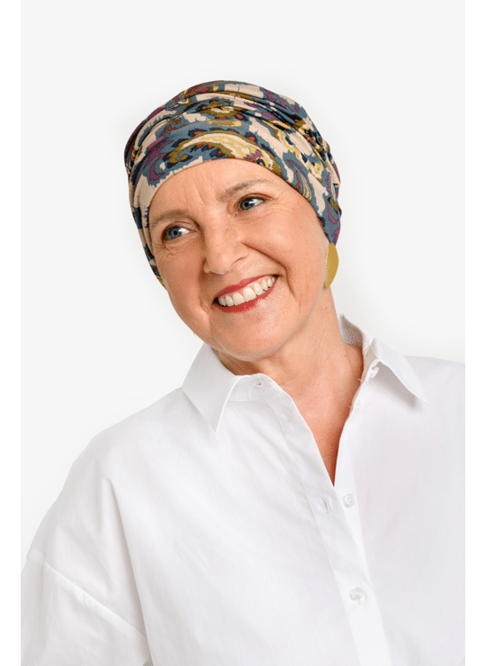 Le Turban Marlene de Rosette La Vedette est un choix parfait pour les femmes en recherche de confort et d'élégance durant leur chimiothérapie.