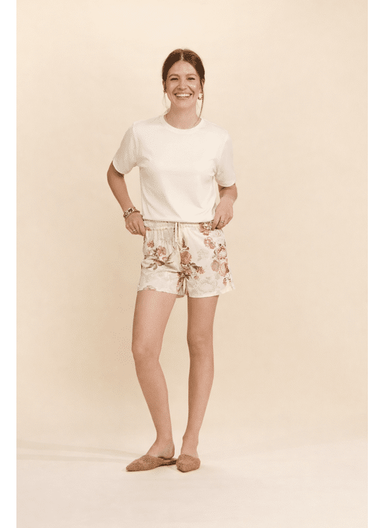 Le short Nori, avec son imprimé floral raffiné, apporte une touche de fraîcheur et d’élégance. Sa taille confortable assure un maintien parfait sans comprimer, pour un confort optimal tout au long de la nuit.