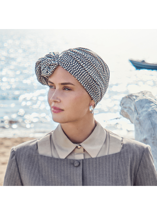 Confectionné dans une matière douce, extensible et respirante, ce turban est spécialement adapté aux cuirs chevelus sensibles. Il assure un maintien sécurisé sans compression et procure un confort optimal tout au long de la journée.