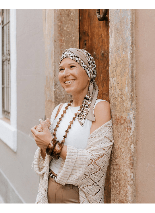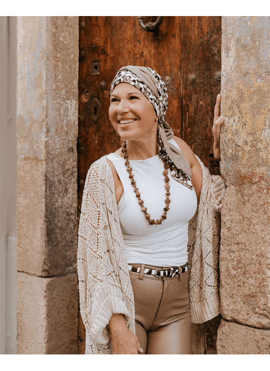 Facile à enfiler, le turban Doris Print est une solution élégante, confortable et rassurante, pensée pour accompagner les femmes avec douceur.